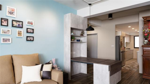 步入廚房前,一處結(jié)合收納柜的活動(dòng)式餐桌,用途廣泛,可以作為飯桌、閱讀、備餐抬的應(yīng)用!