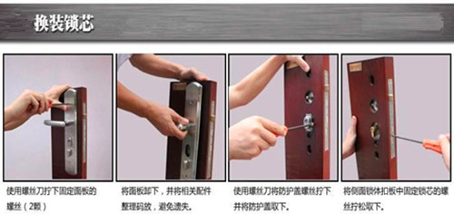 1、首先選好新的鎖芯,再準備好換鎖芯的工具。先用螺絲刀旋下固定面板的所有螺絲,操作很簡單。