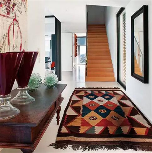 主人在一旁放置了一面鏡子,這樣不僅可以方便我們在進出時整理著裝和儀表,還可以在擴寬視覺效果。那富有民族特色的地毯為居室帶來了別樣的風情,使家里更有格調。