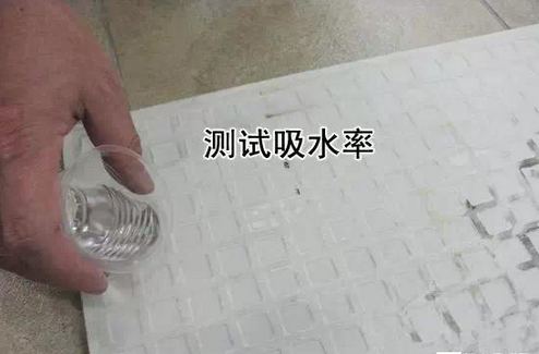 吸水率反映的是瓷磚的密度問題,間接地也是反映出瓷磚硬度的好壞,但有一點需要注意,瓷磚并不是吸水率越低越好哦。這里的吸水率測試,是針對客廳、臥室、走道等區間的瓷磚而做的測試,先把水倒到瓷磚的正反兩面,細心觀察水的滲透情況,如果你買的是拋光磚,水馬上被吸進去,恭喜你,遇到劣質的拋光磚了。一般來說,吸水越慢,說明該瓷磚密度越大;反之,吸水越快,說明密度稀疏,其內在品質以前者為優。