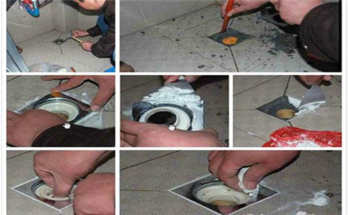 3.清理干凈后,將四周刮上水泥膩子。新地漏四周也刮上水泥膩子,使與地面牢固結合,并將多余水泥清理干凈。在裝新地漏前需將防臭芯取出,以免硬物進入芯內,影響使用效果;