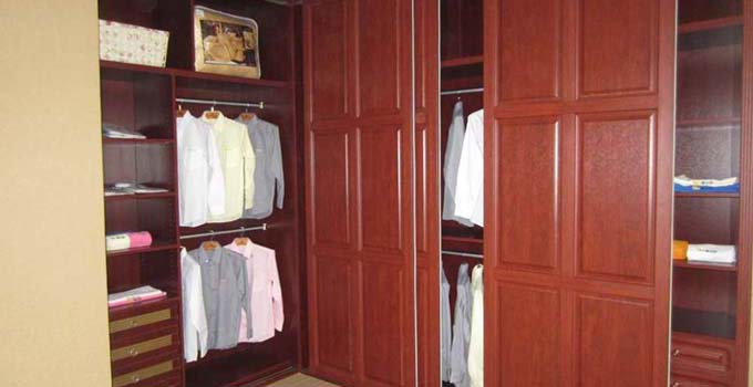 實(shí)木衣柜其柜頂不要壓放重物,不然柜門會出現(xiàn)凹凸形狀,使門關(guān)不嚴(yán)。實(shí)木衣柜盡量避免讓衣柜表面接觸到腐蝕性液體。