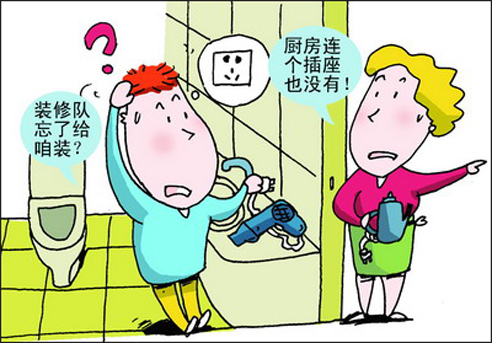 廚房內所用電器較多,所以在進行電路改造時,一定要想清楚廚房內會有哪些電器,具體位置在哪里,想好哪里應該預留電線接口,這樣就不會給自己造成麻煩,衛生間的電路改造只需要把整體照明燈具的線路預留好就可以。