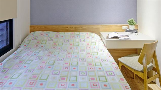 大兒子則因工作緣故較少來此居住,但在規劃上卻不馬虎,而原先入口即可看見床頭位置,因此規劃顧問特別設置一道隔屏,同時在旁拓增小型臺面,不僅能夠將手機、書本放置于此增添更多功能,而小書桌旁接著展示柜衣柜一氣呵成的完成流暢的柜體所需。