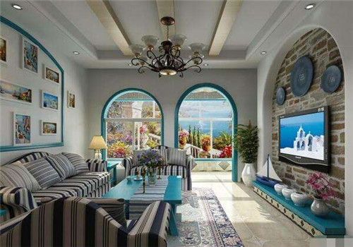 地中海風格經常會采用藍色的屋瓦和門窗、白色墻面、拱門和連廊這些設計元素,從而讓人感覺仿佛置身于海灘上,能感受到藍天白云的氣息。藍色和白色的色彩組合是地中海風格最經典一組配色。
