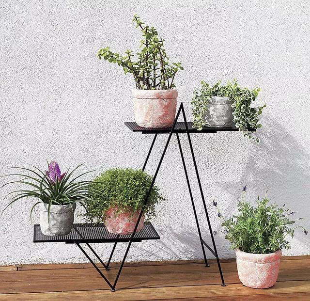 上面這個花架適合布置在戶外,它可以很好地改善植物的布置,讓整個空間變得更加清新自然,還能很好地節省空間,在陽臺上布置就非常適合,或者是擺放在門廊處。