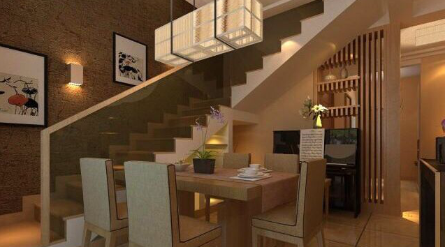 這款小復(fù)式裝修風(fēng)格很簡單,給人有條不紊的感覺。恰到好處的暗色系,不會覺得冷清壓抑,也不會覺得扎眼開放,穩(wěn)重得剛好。家具和裝飾井井有條,餐桌擺放在樓梯的旁邊,生活氣息撲面而來,樓梯的扶手涉及既保障了使用者的安全,也不會使餐廳的融入變得突兀。所有的燈光都沒有很亮,溫柔的燈光將房間的顏色襯托得很到位,將一絲不茍的風(fēng)格渲染得淋漓盡致。樓梯走廊上的壁畫簡單隨意,但是擺放卻很整齊,嚴(yán)謹(jǐn)中夾帶著自由。相信職場精英會很中意這款小復(fù)式裝修。