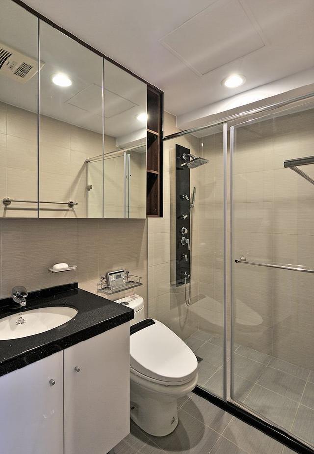 采以干濕分離的衛浴空間,搭配鏡面收納柜,方便于屋主的使用與清理。
