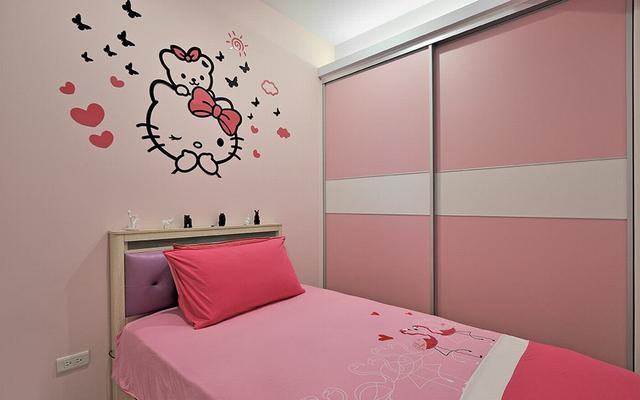 粉色調的女兒房空間并不大,搭配系統衣柜使用,將收納統整起來,讓空間顯得簡潔俐落。