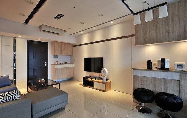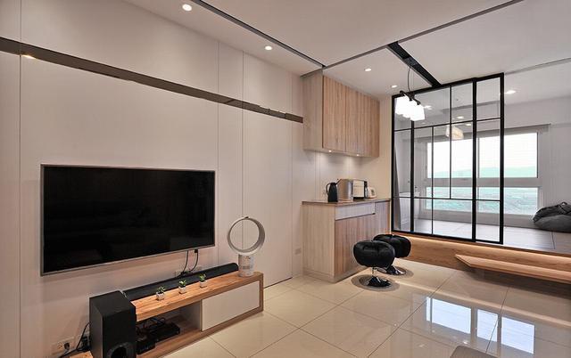 重整原屋格局引納采光后,將兩扇門改為隱藏門,使電視墻顯得完整。