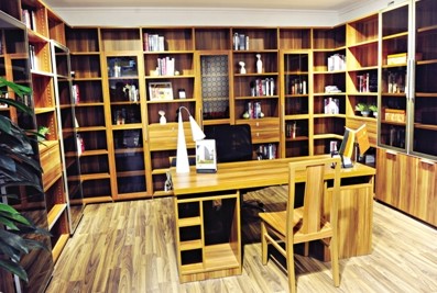 ??? 對于在家辦公的人士,開放式或組合式的板式書柜是不錯的選擇。現代板式書柜可以隨意調整各層的高度,以此來區分各種類別的書籍,方便實用。另外和電腦桌相連為一體的書柜節省空間,書籍取放也非常方便,適合小居室空間使用。