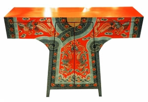 ??? “對襟”玄關(guān)柜 春節(jié)快到了,想擁有一個帶中式感覺的節(jié)日,這個中式玄關(guān)柜是最佳選擇。把它放在門廳入口,大紅的色彩和別致的中式對襟衣服的造型會讓很多人驚呼的。