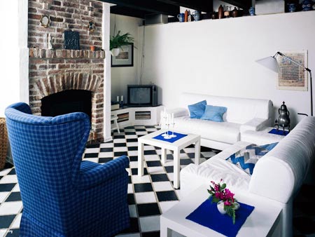 一般人在居家中,不太敢嘗試過于大膽的顏色,認為還是使用白色比較安全。如果喜歡用白色,又怕把家里弄得像醫(yī)院,不如用白+藍的配色,就像希臘的小島上,所有的房子都是白色,天花板、地板、街道全部都刷上白色的石灰,呈現(xiàn)蒼白的調(diào)性。