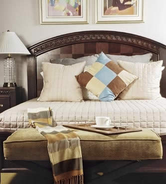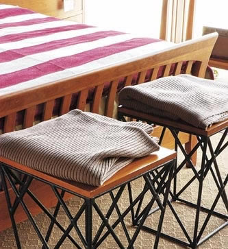 ??? 藤質(zhì)的床尾收納箱實(shí)用至極,內(nèi)部可以放置大量的過(guò)季床上用品,而且其堅(jiān)實(shí)的表面可以放置一些輕巧的物品。