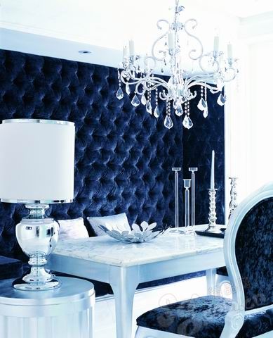 ????? 點睛:黑色用不好容易顯得沉悶老氣,所以黑色的家居用品一定要強調品質感,皮革、錦緞都能較好地展現黑色的雍容與高貴。水晶、金屬制品是黑色最好的伴侶。