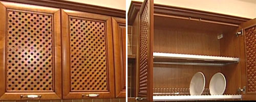 ??? 在上柜采用格子狀的透氣造型,取代傳統的烘碗機,洗滌干凈的碗盤可以直接收納晾干。