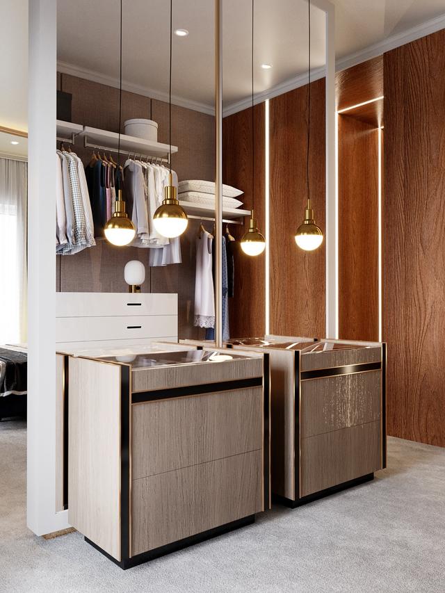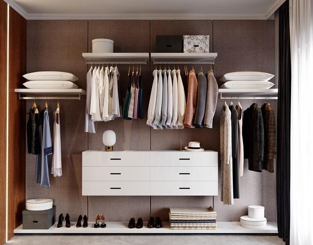 兩個附件柜占據(jù)了衣柜的另一邊。