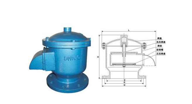 呼吸閥具有放泄正壓和負壓兩方面的功能。具體表現在當容器承受一定正壓的時候,呼吸閥就會打開呼出氣體泄放正壓;當容器承受負壓的時候,阻火呼吸閥就會打開吸入氣體泄放負壓,這樣來保證壓力在一定的范圍內,以此來保證容器的安全。
