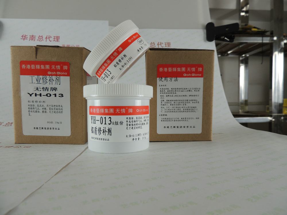 是雙組分、膠泥狀、室溫固化高分子樹脂膠。適用于各種鋁及鋁合金磨損、腐蝕、破裂及鑄造缺陷的修補。以鋁為填充劑,顏色與鋁鑄件基本一致。綜合性能好,固化后硬度高、無收縮,可進行各類機械加工。具有耐磨、耐老化、耐油、防水、抗各種化學腐蝕等優異性能,同時可耐高溫168℃。