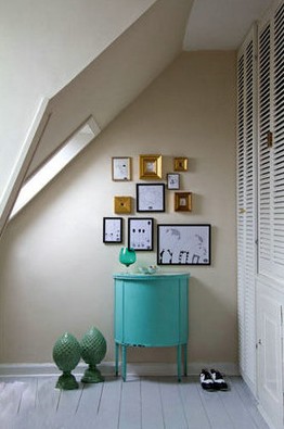??? 白色的墻面和木柜,再搭配上白色的木地板是不是聽起來有些不可思議。但是主人加上了滿墻錯落有致的插畫以及色彩鮮亮的翻新木柜,頓時讓空間充滿了新穎的感覺。