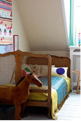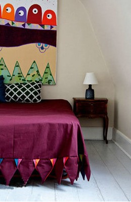 ??? 簡單的線條,鮮艷的色彩,插畫加上床品打造了一個充滿童趣的兒童房。搭配簡潔的白色地板,多了一份寧靜與恬淡。