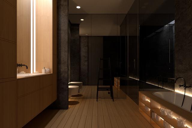 現代照明設計為浴室提供了層次感。