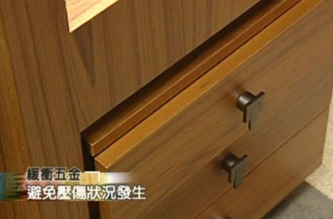 ??? 安裝緩衝式五金的家具,輕推抽屜柜、門片會自動緩慢關上,不發出撞擊聲驚擾家人,還能避免夾到幼童手指的危險。