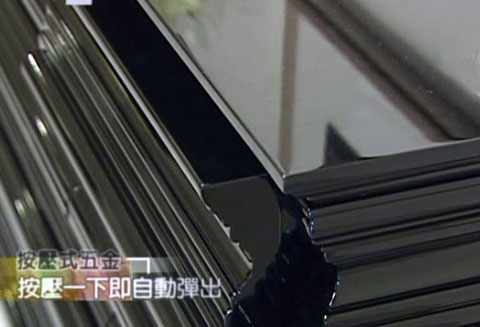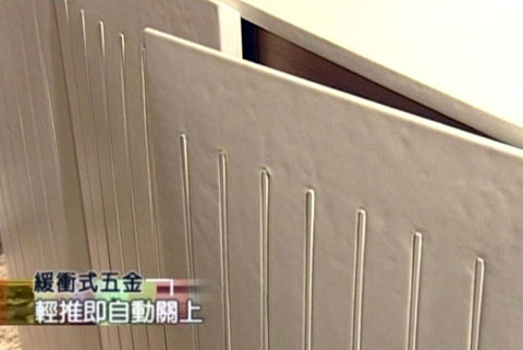 ??? 這類型五金以往多為昂貴的進口品牌,其實,目前中國以開發出功能相當的五金產品,應用于各種精品家具,例如:抽屜柜不再需要有把手設計,開啟抽屜只要輕輕一按,就能自動開啟,再次輕推抽屜柜,抽屜便自動關上。