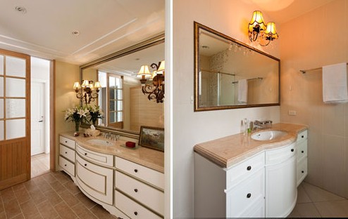 ??? 面盆嵌入臺面下方,因此洗手臺上的可以使用范圍會比較大。