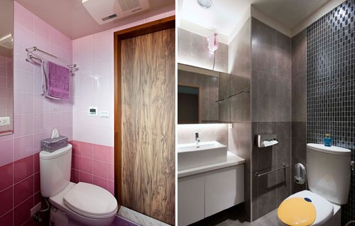 ??? 一般常見的馬桶皆采用此形式,水箱可見的優點是維修容易;另外安裝時要注意的是,若馬桶有移位,必須遷就管線將地板墊高15公分左右。