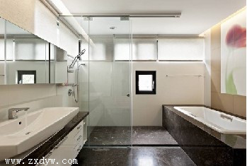 ??? 在比較容易被遺忘的公共浴室中,我們則做了不同的設計。一般的可用衛浴,空間不會太大,所以我們運用了光源的表現,讓整個空間可用呈現出更有層次感,另外還在化妝鏡后面放置了層板燈,并在墻面的壁磚上,還用不同材質及不同線條變化的壁磚做空間的呈現,使整個空間更明亮,更有層次感。裝修第一網提醒針對衛浴墻面的設計規劃上來講,如果想要有點精致度的話,可用運用一些花磚的搭配;如果想讓空間更活潑,可用使用馬賽克及顏色明亮一點的壁磚來做搭配;如果想要讓空間能夠再放大的話,可用運用一些大面積玻璃及層板燈,讓整個燈光表現襯托出來。