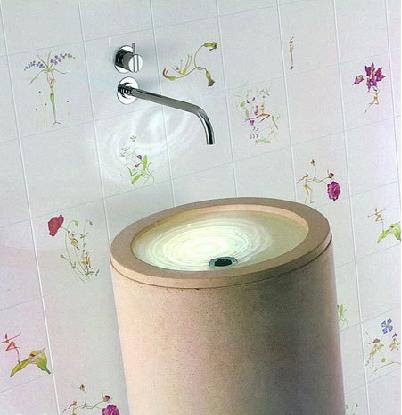 ??? 躺在浴缸里洗浴,潔凈身體的同時,精神也能得以放松,只是白色的衛浴環境太過素淡,不如在浴缸和墻之間砌個擱放用品的儲物臺,并用柔和的黃色瓷磚加以裝飾,周邊搭配花磚,整個洗浴環境立刻增色不少。