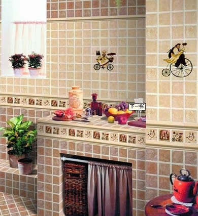 ??? 有一些瓷磚的表面被處理成橫縱交錯(cuò)的纖維樣式,再在上面點(diǎn)綴各種古樸的花色,整塊瓷磚就好像一匹古色古香的布料,藝術(shù)味十足。