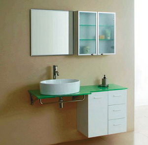 木質的浴室柜吸水容易變形,所以它對周圍環境有非常苛刻的要求,而普通家庭的浴室一般只有幾平方米的空間,不容易做到干濕分區。在選購浴室柜時,可以選擇采用防火板、耐磨板、高分子聚合物等復合型板材作為柜面材料的產品,不但具有很好的防潮性,還能模擬出實木的顏色。