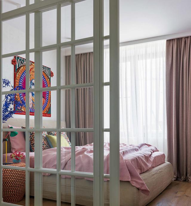 在另一組玻璃門后面,一個令人振奮的臥室設計正在等待著你。