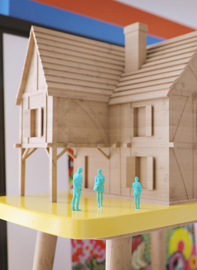 砍伐的原木填滿了廢棄的壁爐,它們的末端被涂上了彩虹般的顏色,以在這個空間中發揮出點綴的作用。