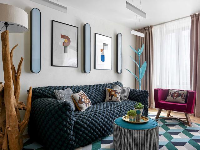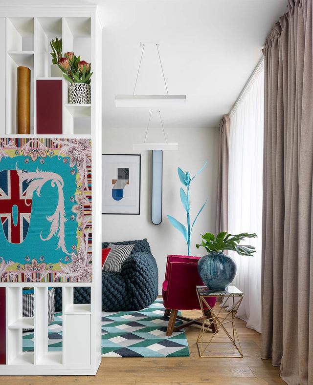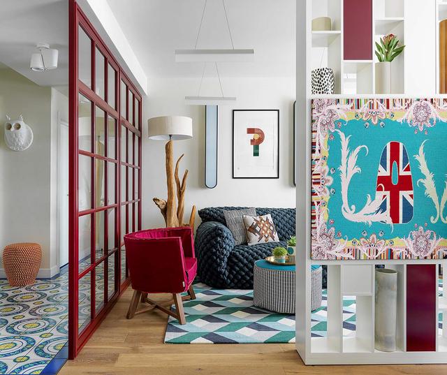 第二個公寓室內充滿了活力和異想天開的折衷裝飾,充滿了孩子般的童趣。