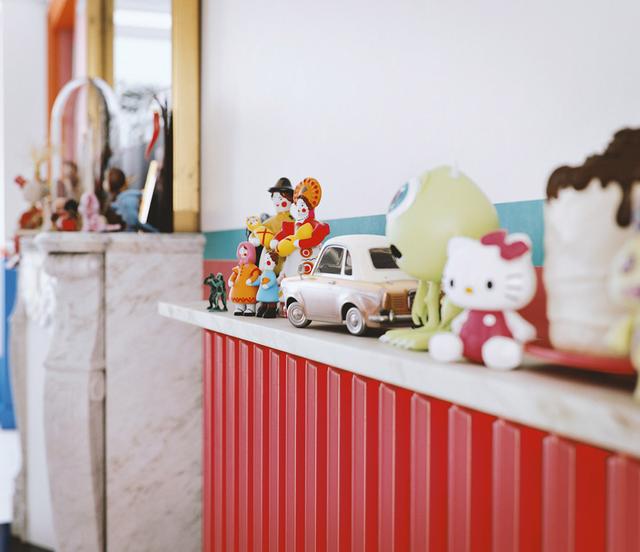 這套公寓的色彩設計簡單,很多類似于兒童的裝飾品和兒童玩具。