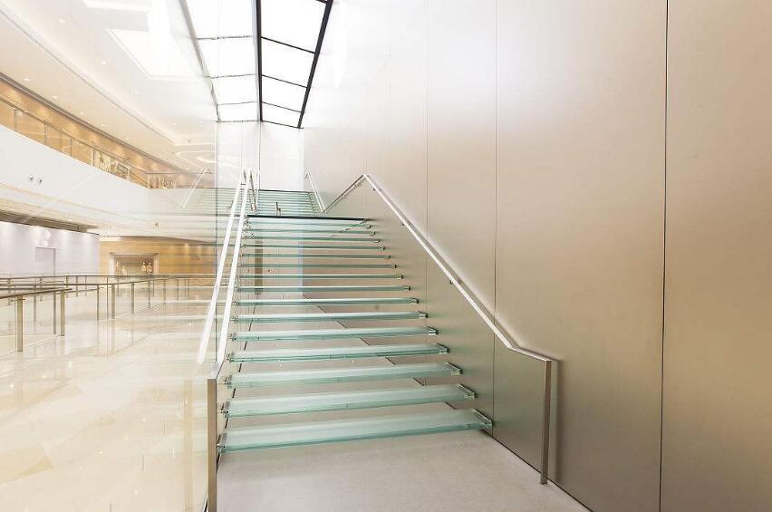 玻璃樓梯是一種新生事物,它的購買人群主要為比較現(xiàn)代的年輕人。玻璃大都用磨砂的,不全透明,厚度在10mm以上。這類樓梯也用木制品做扶手,價(jià)格比進(jìn)口大理石低一點(diǎn)。