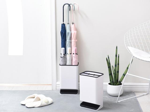 下雨天真是特別糟糕的日子,不僅出門(mén)很容易把衣服鞋子弄濕,而且濕淋淋的雨傘還容易把家里弄濕,不過(guò)有了這種雨傘架就不一樣了,能把水接起來(lái)而不流到地板上,整齊收納也更顯得美觀大方。