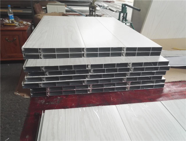 芯材采用六角形3003型鋁蜂窩芯,鋁箔厚度0.04~0.06mm,邊長5~6mm,采用輥壓成型技術完成正、背表皮的成型,全自動機器設備折邊,正、背表皮在安裝邊緊緊咬合。整個加工過程全部在現代化工廠完成,采用熱壓成型技術,因鋁皮和蜂窩間的高熱傳導值,內外鋁皮的熱脹冷縮同步;蜂窩鋁皮上有小孔,使板內氣體可以自由流動;可滑動安裝扣系統在熱脹冷縮時不會引起結構變形,因此可以保證極高的平整度.采用黏結膠:雙組份聚胺酯高溫固化膠,用全自動蜂窩板復合生產設備通過加壓高溫復合而成,克服了以往蜂窩板粘接層的脆性問題。內層為特制的六邊形鋁蜂窩,由硬度達到H19的鋁合金構成,作為粘附在夾層結構中的芯板,在切向上承受壓力。這些相互牽制的密集蜂窩猶如許多小工字梁,可分散承擔來自面板方向的壓力,使板受力均勻,保證了面板在較大面積時仍能保持很高的平整度。