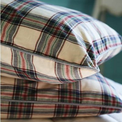 ??? 沿著雙面布簾的邊緣、靠枕的外輪廓或床罩的一周加上穗帶、花邊、流蘇或其他縫制手法來裝點一下兩邊織物的縫合處。如果嫌鑲邊裝飾過于昂貴,也可以嘗試一種簡易的辦法:用對比效果的條紋格子布或者僅僅是凈面織物滾一道邊,也能使你的靠枕錦上添花。