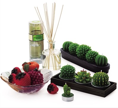 ??? 五月來臨,各種水果都相應上市,你是否迷戀水果的芬芳?HOLA該系列的仙人掌香氛蠟燭和水果香氛蠟燭,多種造型,色彩鮮艷誘人。另外還搭配有香氛驅蚊馨香燈和香茅精油,讓春末夏初的味道變成甜蜜的馨香。
