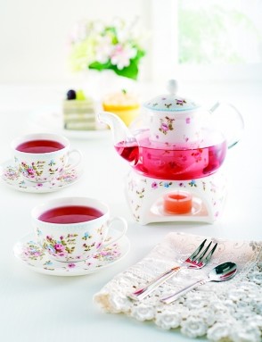 ??? 情人節(jié)這一天,一頓燭光晚餐必不可少。此時,除了在蠟燭或燭臺上玩點花樣外,其實還可以在餐具選擇上用點兒心。一款心形的陶瓷餐具,通過色彩肌理呈現(xiàn)出干凈、純潔的感覺,再配上顏色相宜的菜肴,溫馨愜意的感覺頓時涌上心頭。當(dāng)然,如果這頓晚餐是你的他或她精心炮制的,如此溫馨和諧的畫面定會深深印在腦海里,成為日后的浪漫回憶。而一頓大餐過后,飲茶聊天也是不錯的選擇。不過,喝茶的茶具看起來要典雅、精致,從茶杯、茶匙、茶刀、茶碟到裝點心的茶盤,不妨購買色系一致、圖案相同的一整套茶具。墊杯子的墊子或桌布亦可選擇刺繡或蕾絲花邊的,再放首優(yōu)美的音樂,浪漫的氛圍自然就出來了。