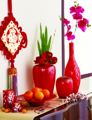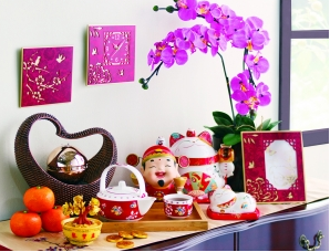 ??? 過年,家家戶戶都喜歡說吉祥話,討個(gè)好口彩。其實(shí),在家居裝飾上只要多花點(diǎn)心思,選擇一些顏色喜慶又寓意吉祥的飾品,就能傳遞濃濃的新年祝福,擁有紅火滿堂的吉祥“好”年。論喜慶,紅色肯定是首選,紅色碎花面料做成“龍”抱枕、可放置在客廳或臥室的紅燈籠、頭頂紅色官帽的陶瓷版“財(cái)神爺”、通體都是紅色的招財(cái)樹等等,只要有紅色做裝點(diǎn),怎么看都帶著喜氣,來年家人和自己一定好運(yùn)連連。另外,過年免不了親朋留宿,客房的布置也可以變動(dòng)一下,從窗簾到地毯,從被套到床單,都可換成紅色的,讓客人有個(gè)好夢(mèng)。