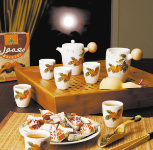??? 皓月當空時,少不了與家人一起品著香茗,悅賞一輪明月,談天說地,共享這一份團圓之樂。如果家里帶有私家小院或陽臺,那自然是更好不過了。可以在院內或是陽臺擺上桌凳,再放上有吉祥如意字樣的月餅,配點顏色多彩的鮮果、小食,手握溫潤醇香的茶品,飲著幸福美好。當然,品茶賞月的古風禪意在于細節處的提亮,寓意美好的茶具搭配茶道工具即可輕松營造。在HOLA特力和樂家居,就有一款名為宜龍柿柿如意的茶具組。據說,此款設計出自大師郭禹君的畫作,以寫意的手法描摹紅柿為主題的設計,寓意“事事如意”,符合節日的氣氛。而一壺搭配6個杯子的設計,適合全家人一起品茗,讓幸福的茶香滿溢心里。