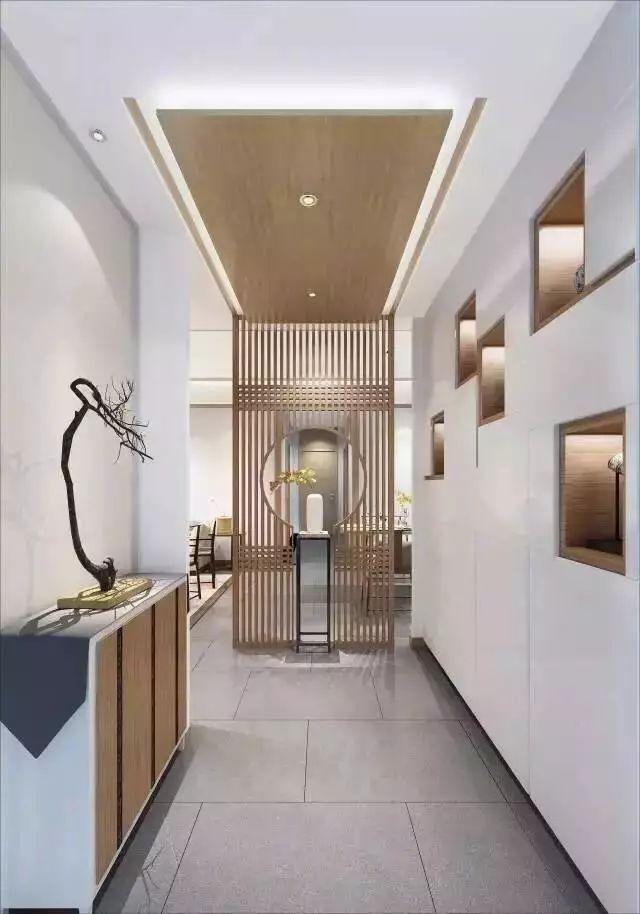 木格柵造型的吊頂,看起來古樸、自然,給人一種簡約卻不單調(diào)的視覺呈現(xiàn)。這種吊頂方式可以作為小面積的局部吊頂,尤其適用于陽臺(tái)、門廳、飄窗等區(qū)域,可以讓空間更有層次感。