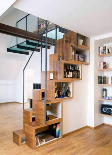 推薦理由:雜物那么多,總會不經意弄亂整潔的房子,不要擔心有辦法。以上這個樓梯是將樓梯底下做成了一個儲物間,當樓梯變成儲物室,所有凌亂的雜物就有處可放了。