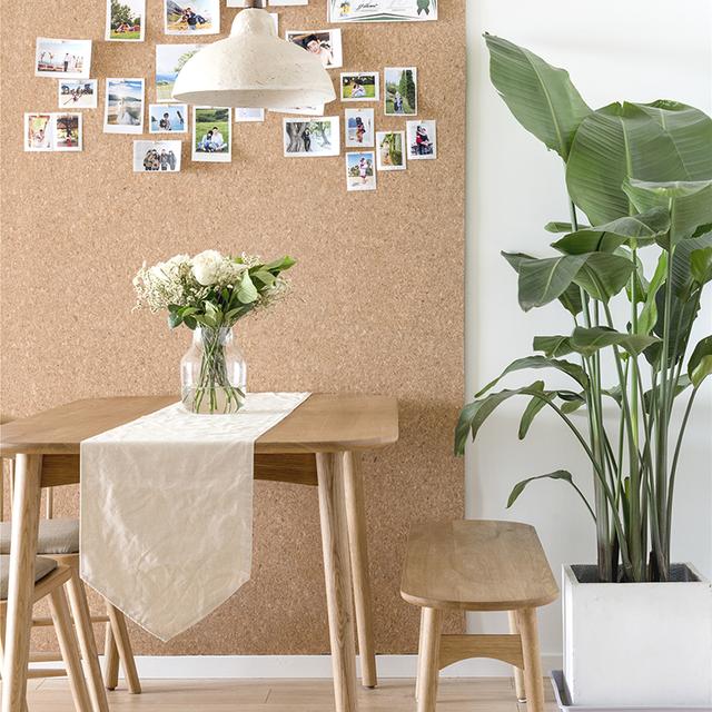 餐廳裝修和客廳一樣,保持一種色調與風格,墻壁做了一個簡單的造型,是一面很有創意感的背景墻板面,可以掛放一些照片,用這種板面做一面很有創意文藝感的照片墻,搭配原木色的餐桌椅再搭配綠植綠化,更是多了一些清新感。