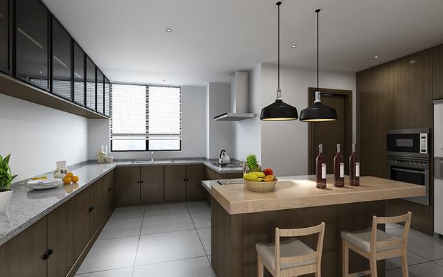 開放式的廚房打造櫥柜,這種櫥柜量身定制會合理進行空間利用,這樣轉角的結構設計,可以實現大容量的收納,而且把廚房裝的十分的高大上,吊柜到頂的設計一排吊柜也能實現收納,開放式的廚房這樣合理打柜很實用。